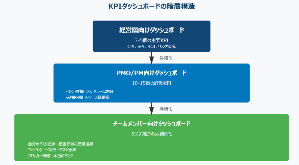 - 戦略的KPI:3-5個(プロジェクト全体の成功を示す)
